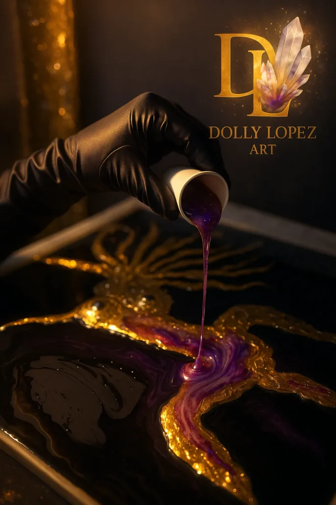 In my hands as an artist, epoxy becomes a tool for storytelling—freezing motion, color, and crystal energy into permanent, radiant compositions.