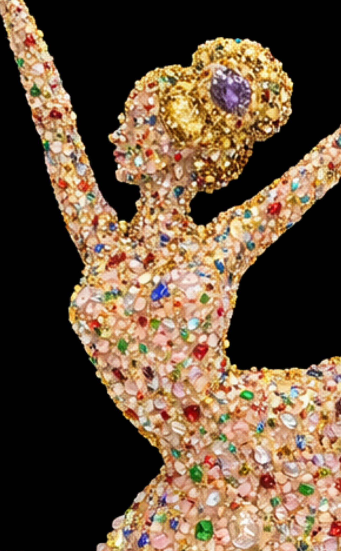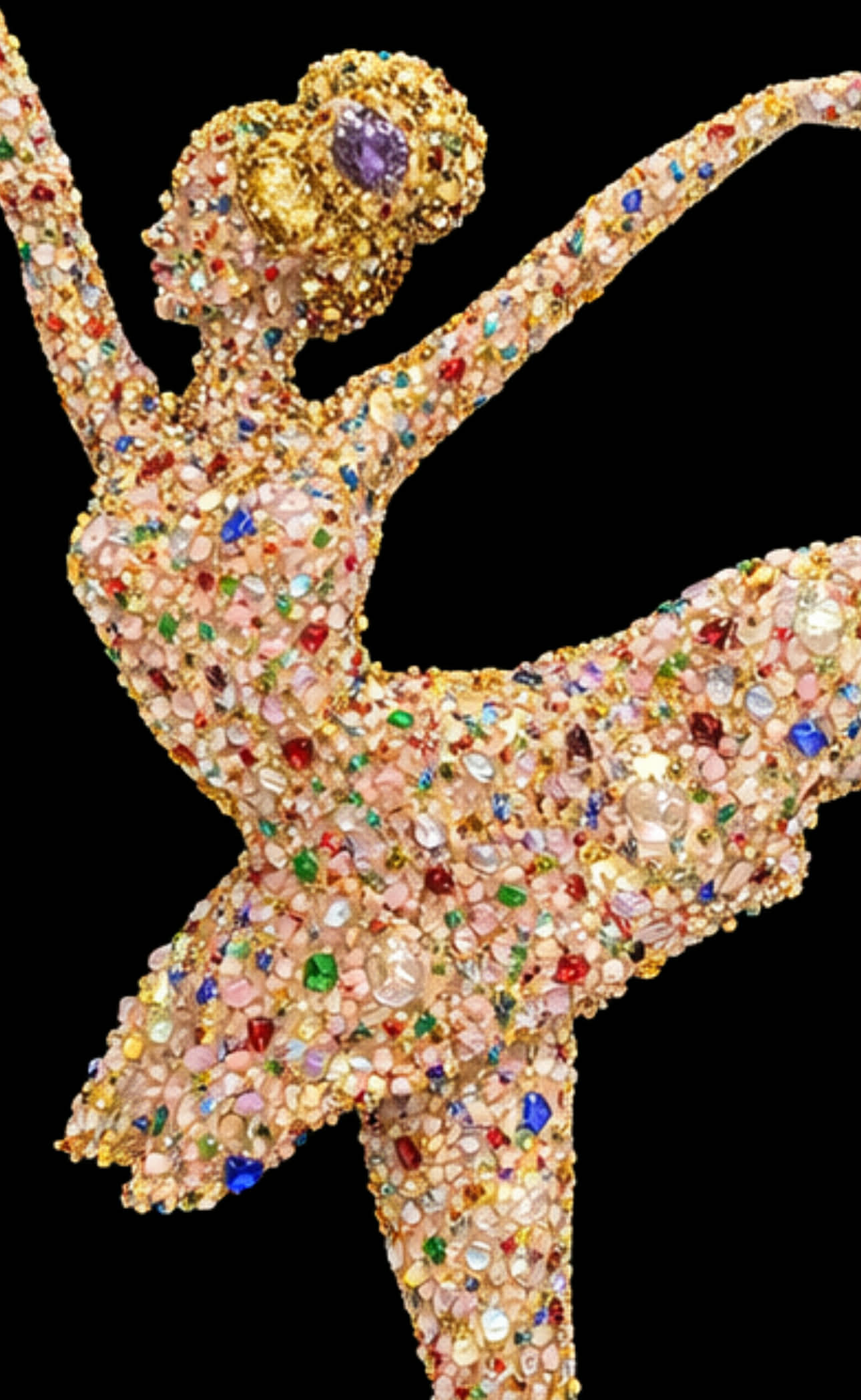 Luxury Rose Quartz ballerina crystal resin wall art with Amethyst. Handmade in Germany. One-of-a-kind spiritual crystal artwork for modern interiors.