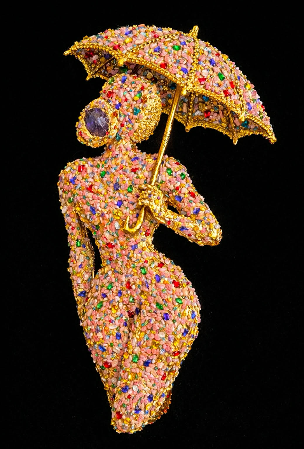 Rose Quartz Crystal Woman Silhouette with Umbrella