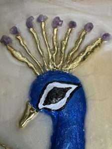 Introducing “Azure Marble Peacock,” a masterpiece that fuses the beauty of amethyst with the warmth of beige agate.