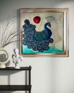 This peacock artwork is not just an ornament—it’s a symbol of awakening, grace, and divine energy.