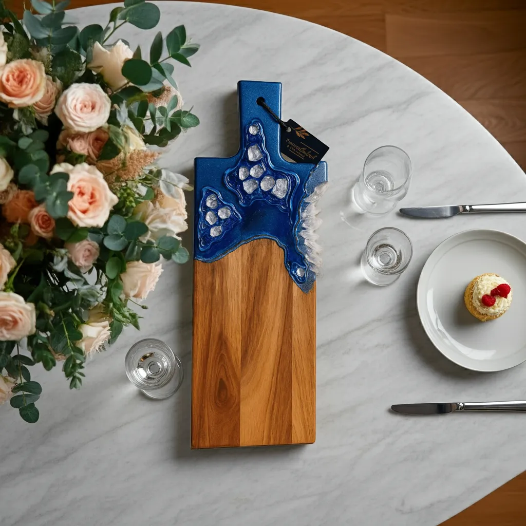 Each board is a one-of-a-kind creation, combining natural wood beauty with artistic resin details. Ideal for special occasions, gifting, or enhancing your kitchen aesthetic.
