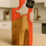 Bring a touch of elegance to your table with this stunning Coral Red Acacai Wood Cutting Board by Dolly Lopez Art.