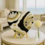 This piece is a sculptural tribute to divine balance—where light and shadow meet. The interplay of black and white with shimmering crystals and gold represents duality, clarity, and soulful elegance. It brings a sense of calm strength and sacred design into any refined interior.