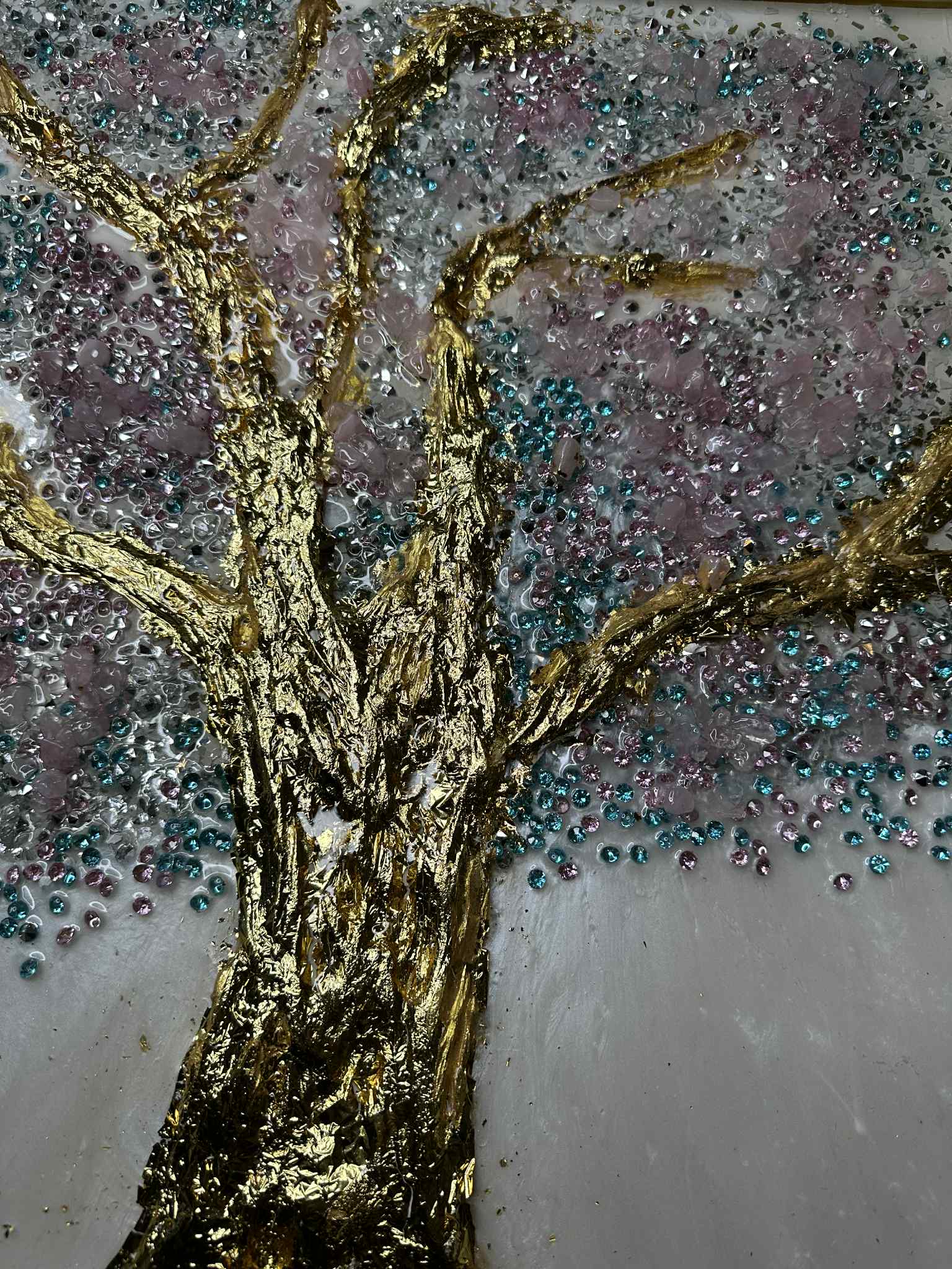 Medium: Crystals, 24K gold leaf, epoxy resin, wood