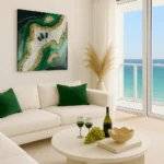 Visual Impact: Rich green tones and golden shimmer add elegance and serenity to modern interiors