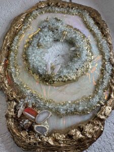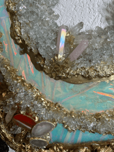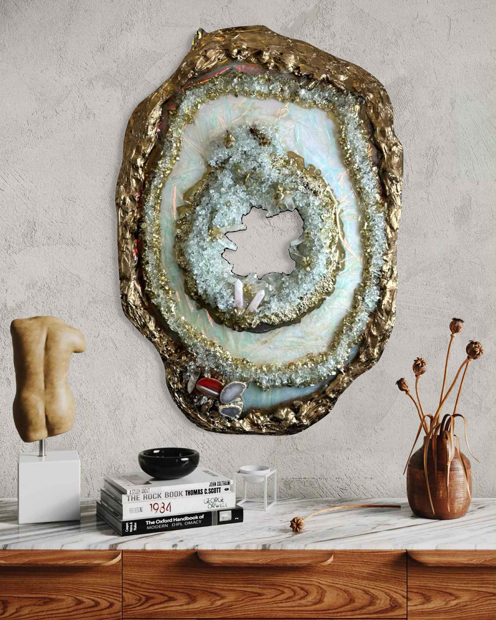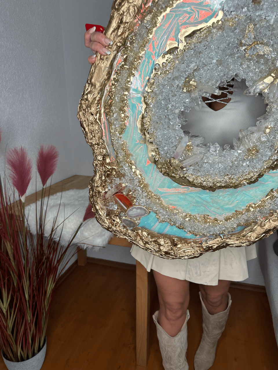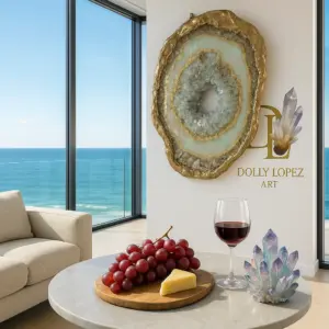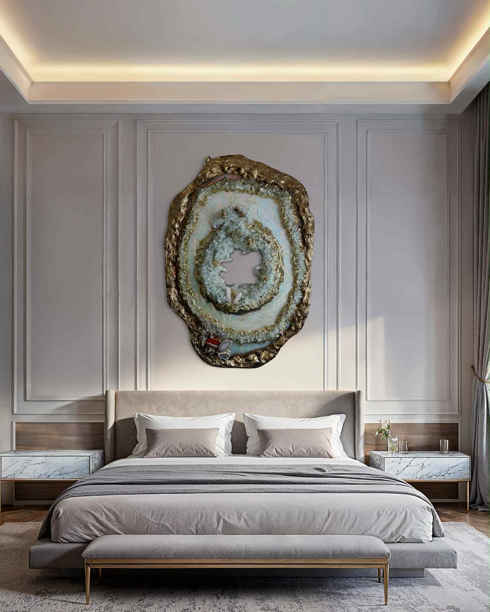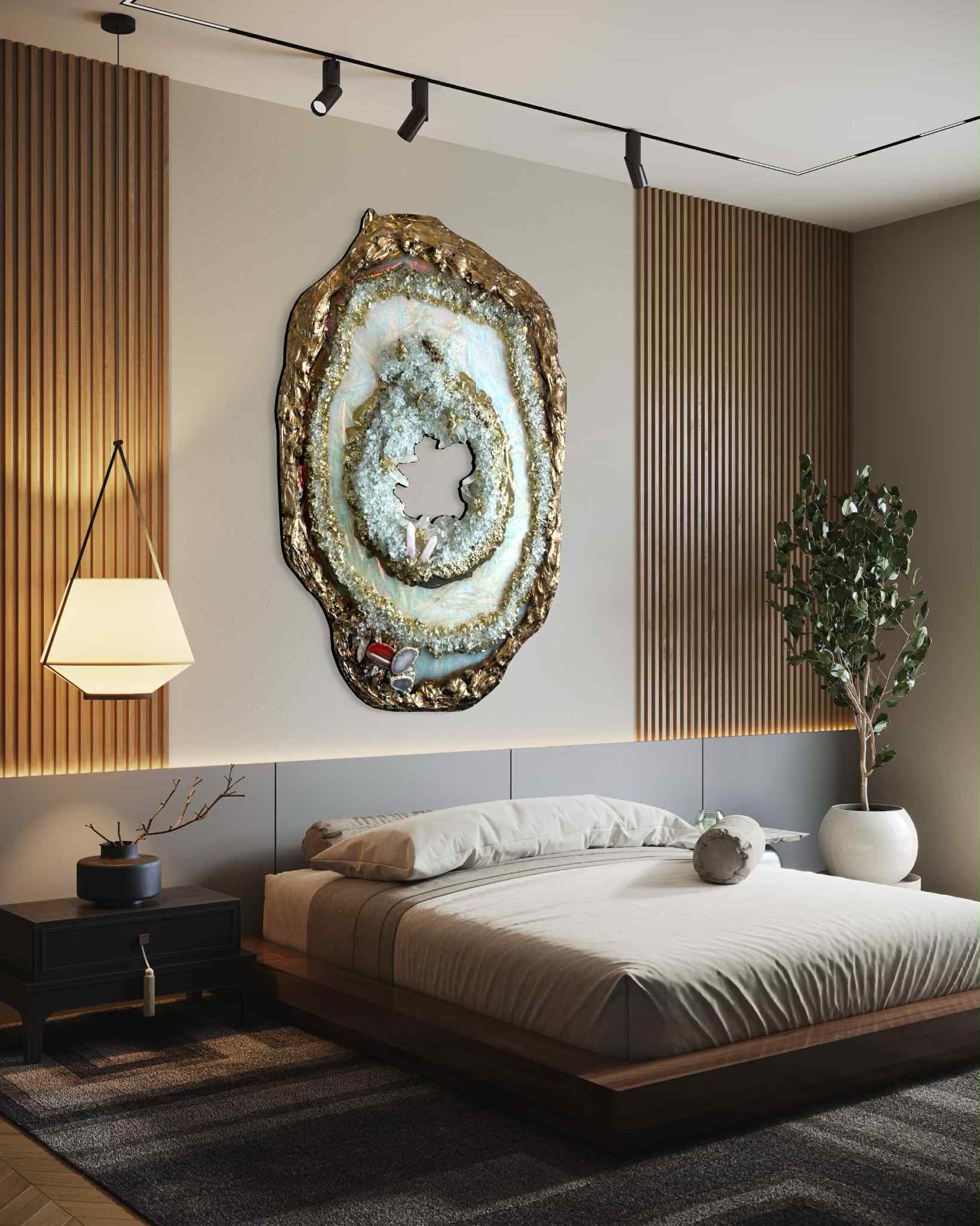 When quartz is included in resin artworks, it doesn’t just look beautiful — it also turns the piece into a source of energetic healing and emotional balance. That’s why crystal art is often placed in meditation rooms, bedrooms, or minimalist spaces where peace and energy flow are important.