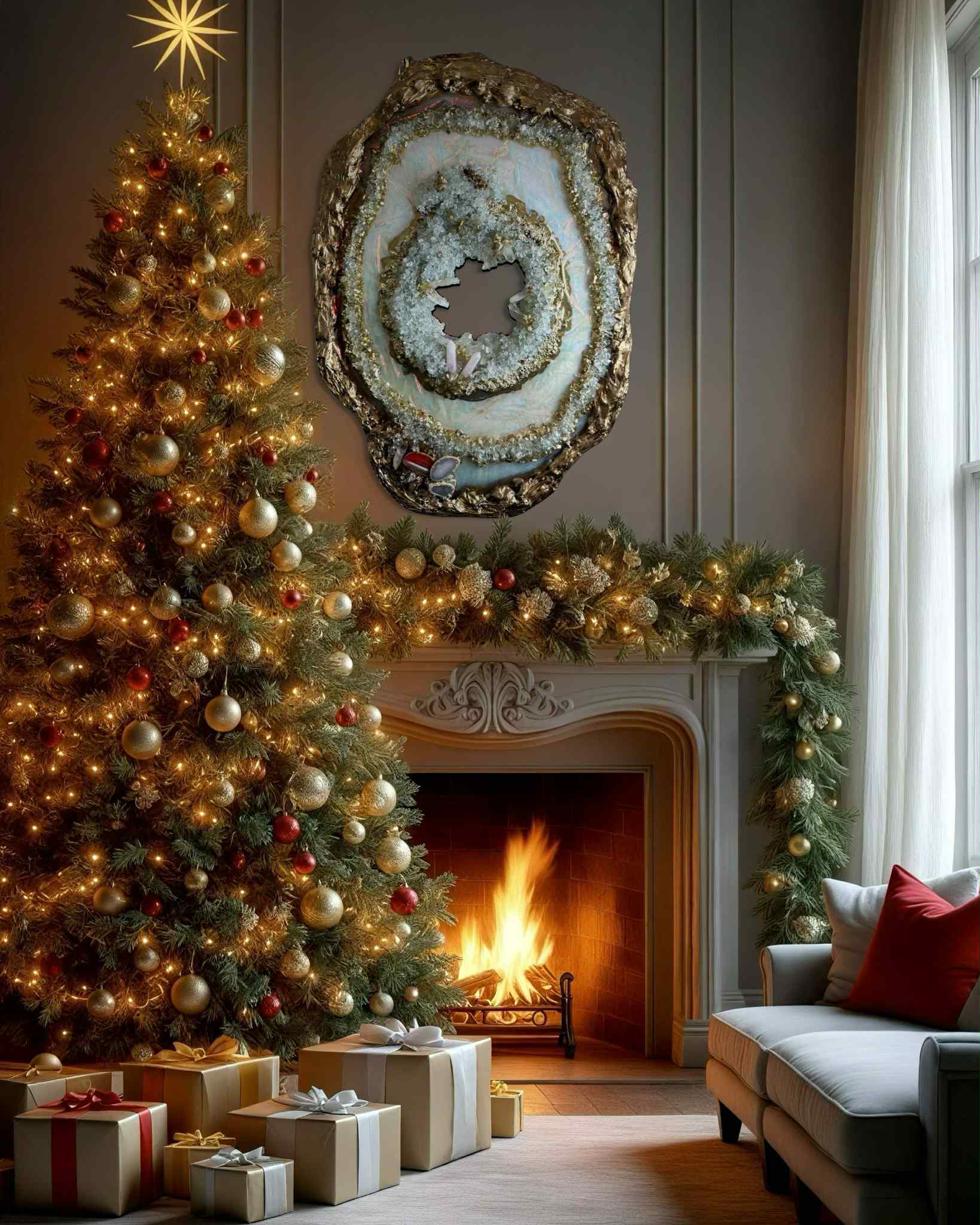 - Beige and Orange Agate Slices: Provide grounding and warmth, creating an earthy contrast to the shimmering rainbow and gold.