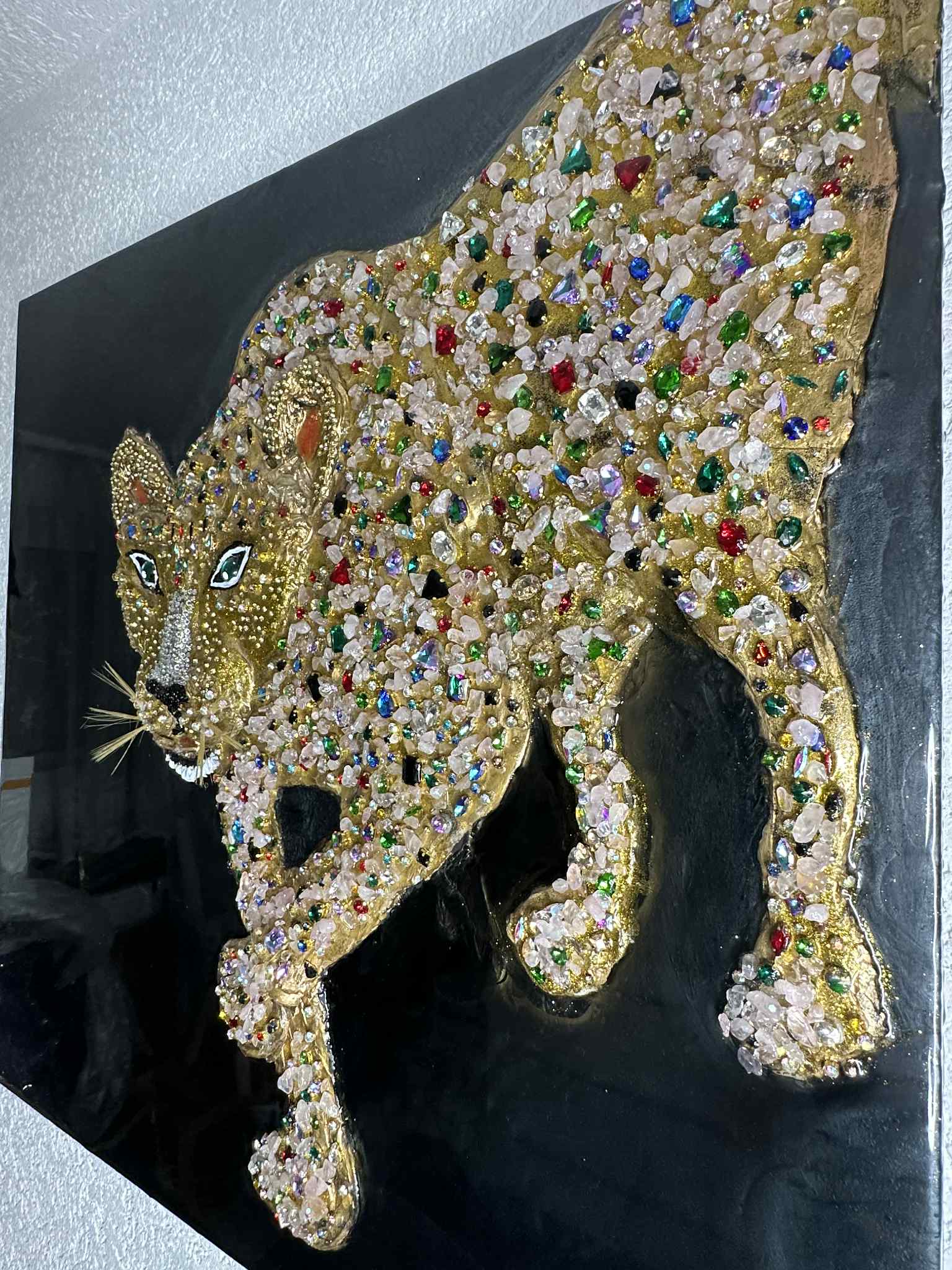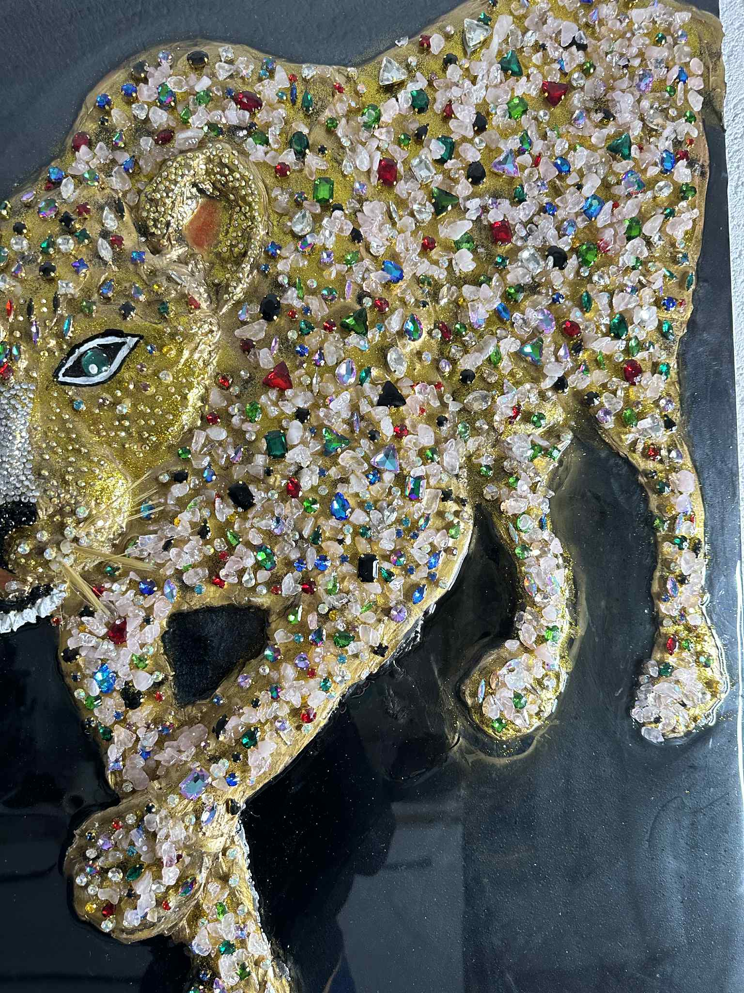 “Jewel Leopard” – Luxury Resin Art with Quartz & Gemstones