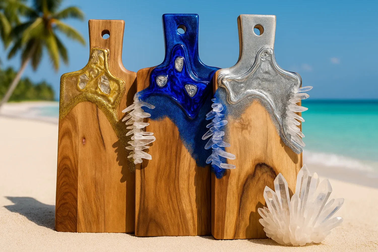 When quartz is included in resin artworks, it doesn’t just look beautiful — it also turns the piece into a source of energetic healing and emotional balance.