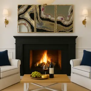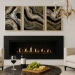 Designed for sophisticated interiors, this three-part artwork brings together modern design and sacred symbolism—creating depth, movement, and luxurious energy flow across your space.