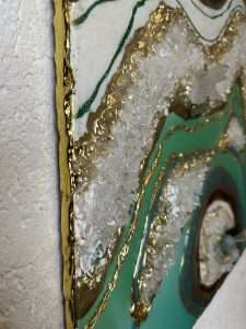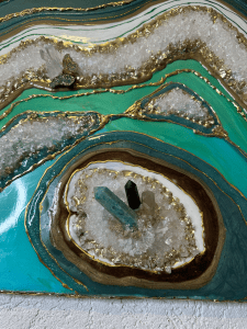 When quartz is included in resin artworks, it doesn’t just look beautiful — it also turns the piece into a source of energetic healing and emotional balance. That’s why crystal art is often placed in meditation rooms, bedrooms, or minimalist spaces where peace and energy flow are important.