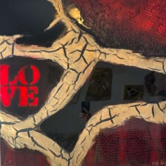 Step into the vibration of pure emotion with LOVE, a striking 80 × 80 cm mixed media resin artwork by artist Dolly Lopez. This piece is layered with high-gloss black resin, crackle textures, and luxurious gold spray details, creating a bold contrast between strength and vulnerability. The central element — the word LOVE — radiates with emotional power, turning the artwork into a symbol of universal connection, passion, and divine energy.