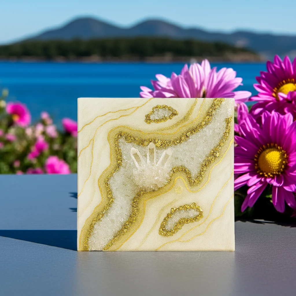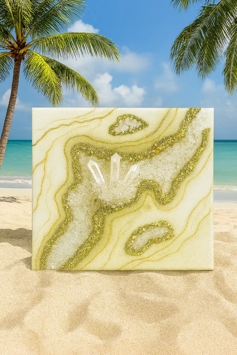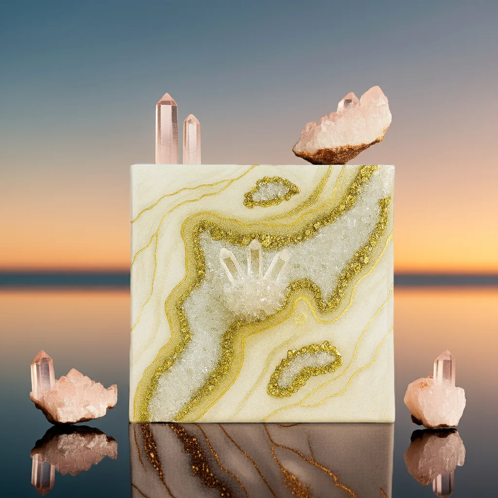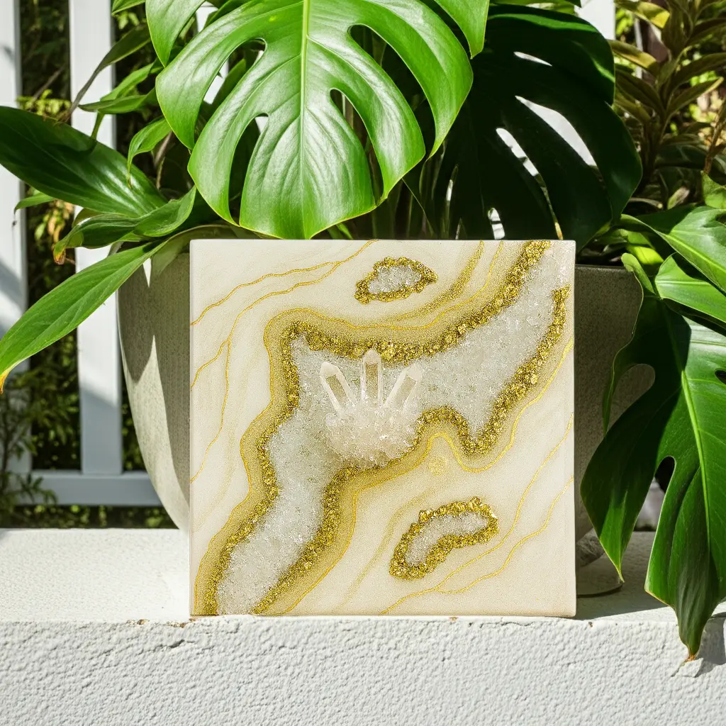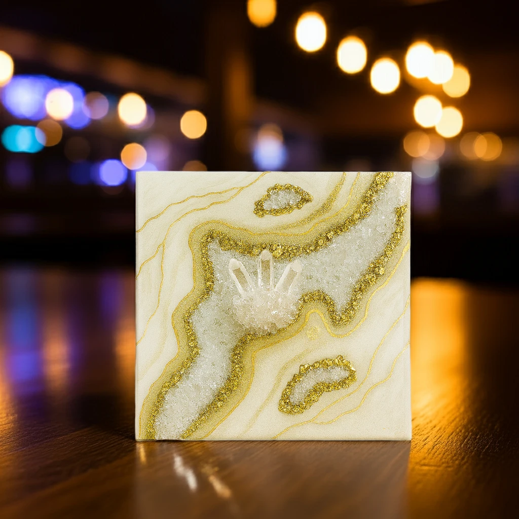 When quartz is included in resin artworks, it doesn’t just look beautiful — it also turns the piece into a source of energetic healing and emotional balance. That’s why crystal art is often placed in meditation rooms, bedrooms, or minimalist spaces where peace and energy flow are important.