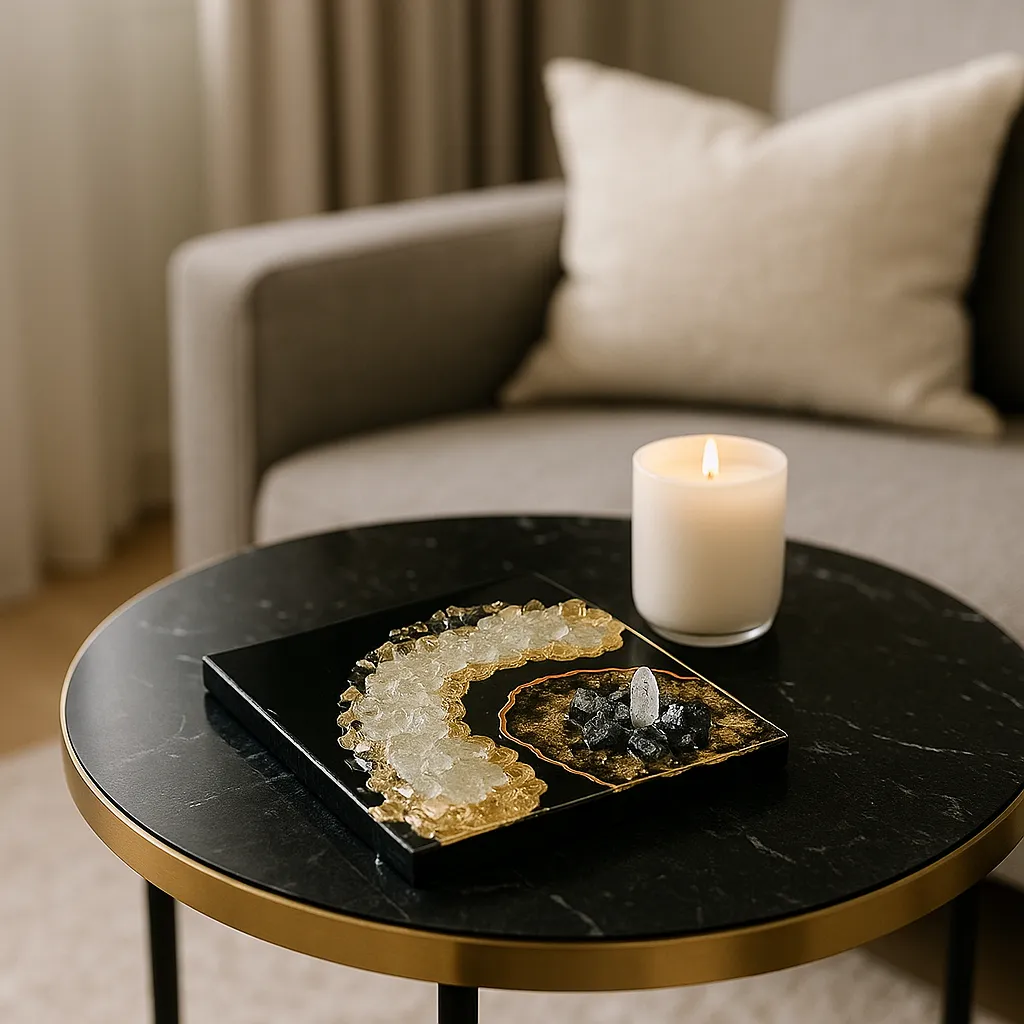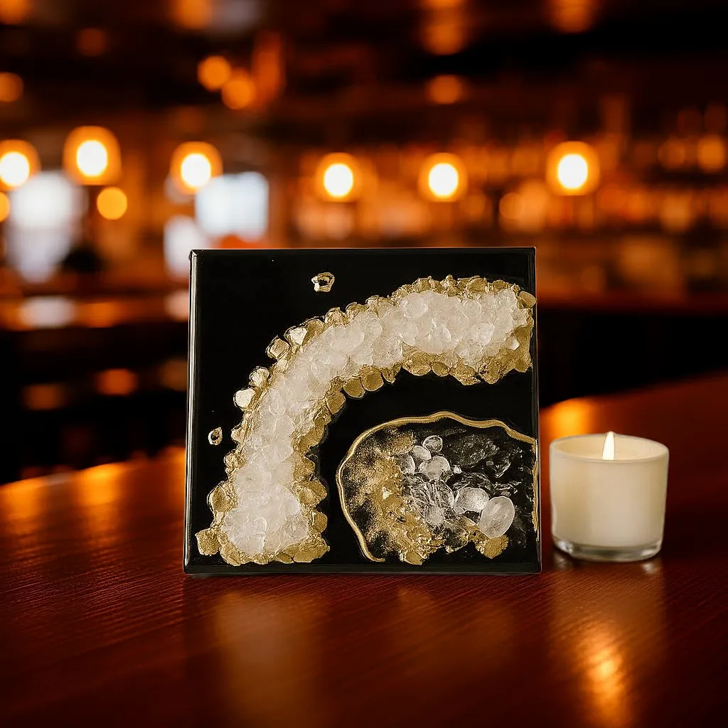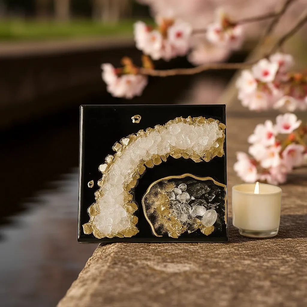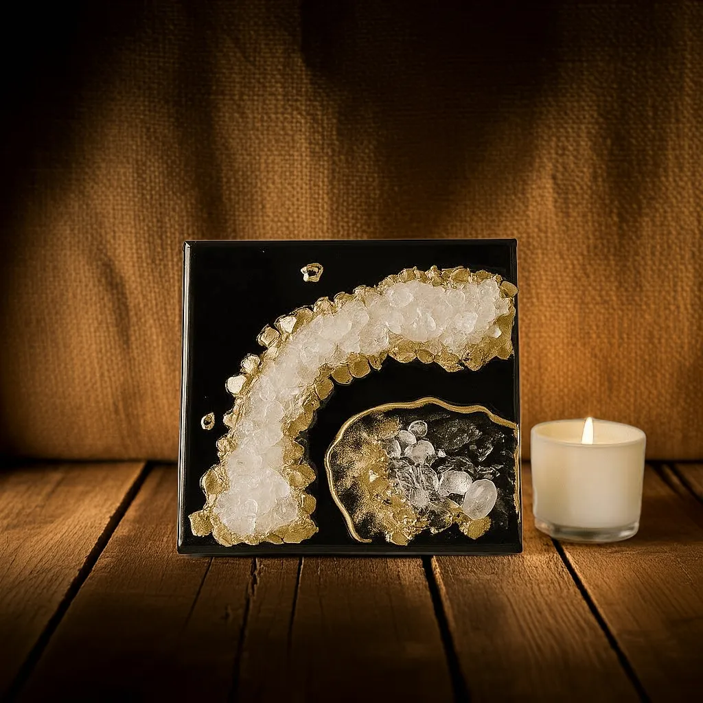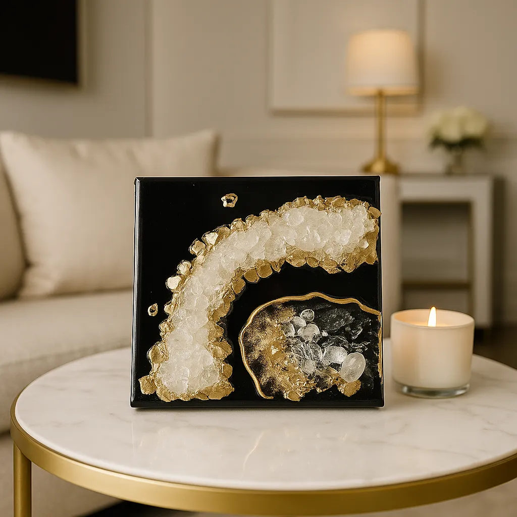 When quartz is included in resin artworks, it doesn’t just look beautiful — it also turns the piece into a source of energetic healing and emotional balance. That’s why crystal art is often placed in meditation rooms, bedrooms, or minimalist spaces where peace and energy flow are important.