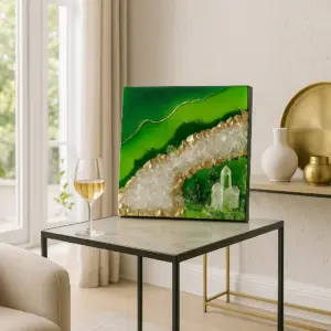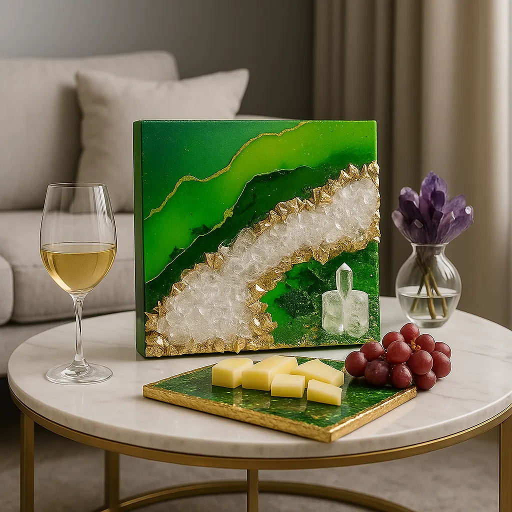 When quartz is included in resin artworks, it doesn’t just look beautiful — it also turns the piece into a source of energetic healing and emotional balance. That’s why crystal art is often placed in meditation rooms, bedrooms, or minimalist spaces where peace and energy flow are important.