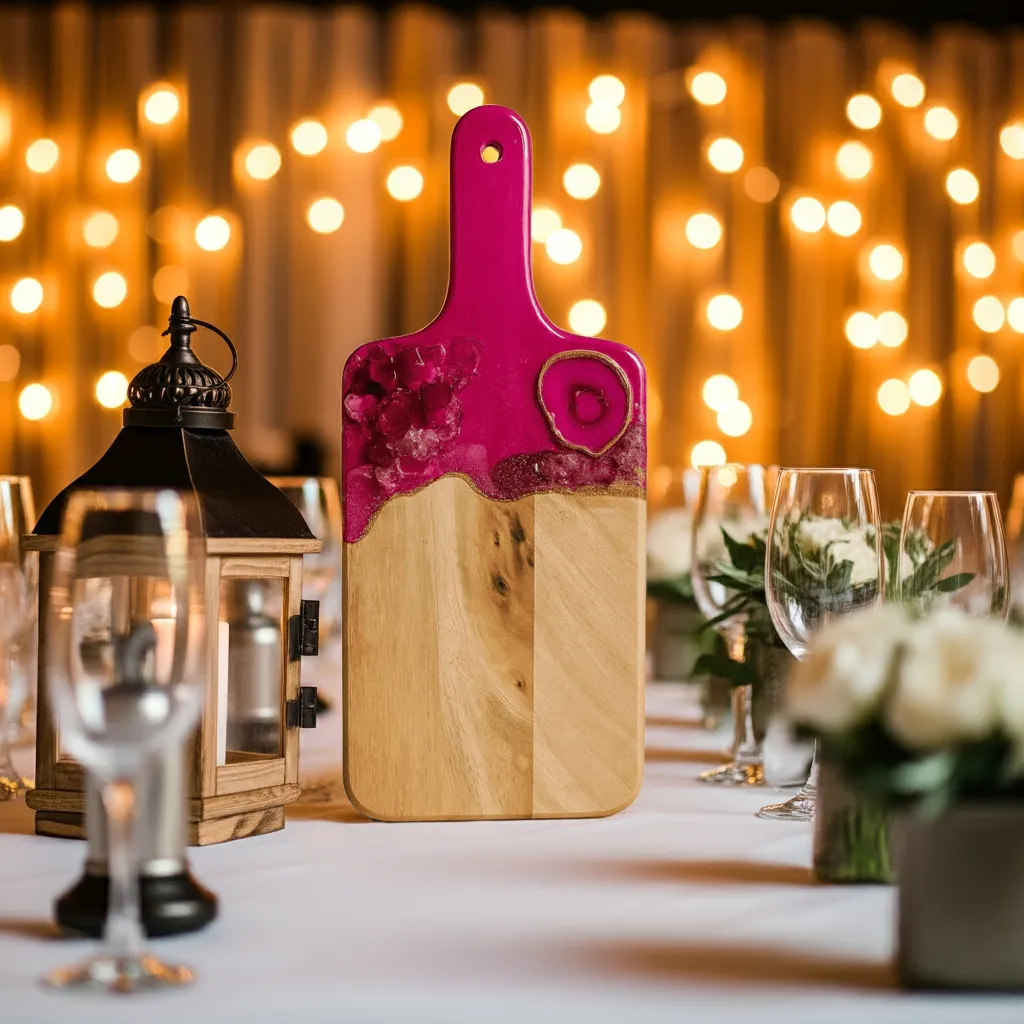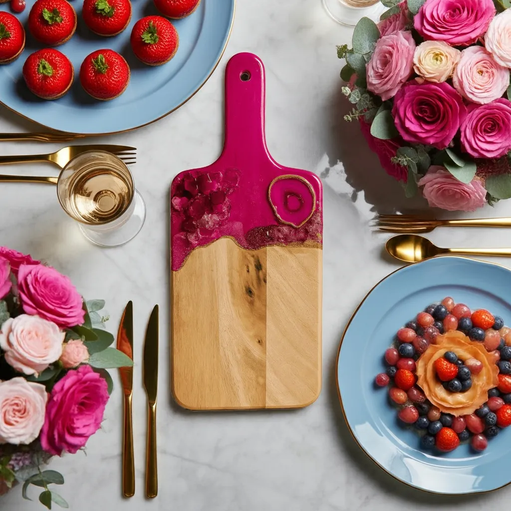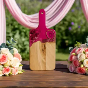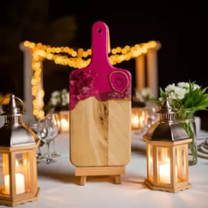 This beautiful Pink and  gold  cutting board is a luxury piece of functional art for the kitchen. Made from acacia wood with 3 layers of epoxy resin.