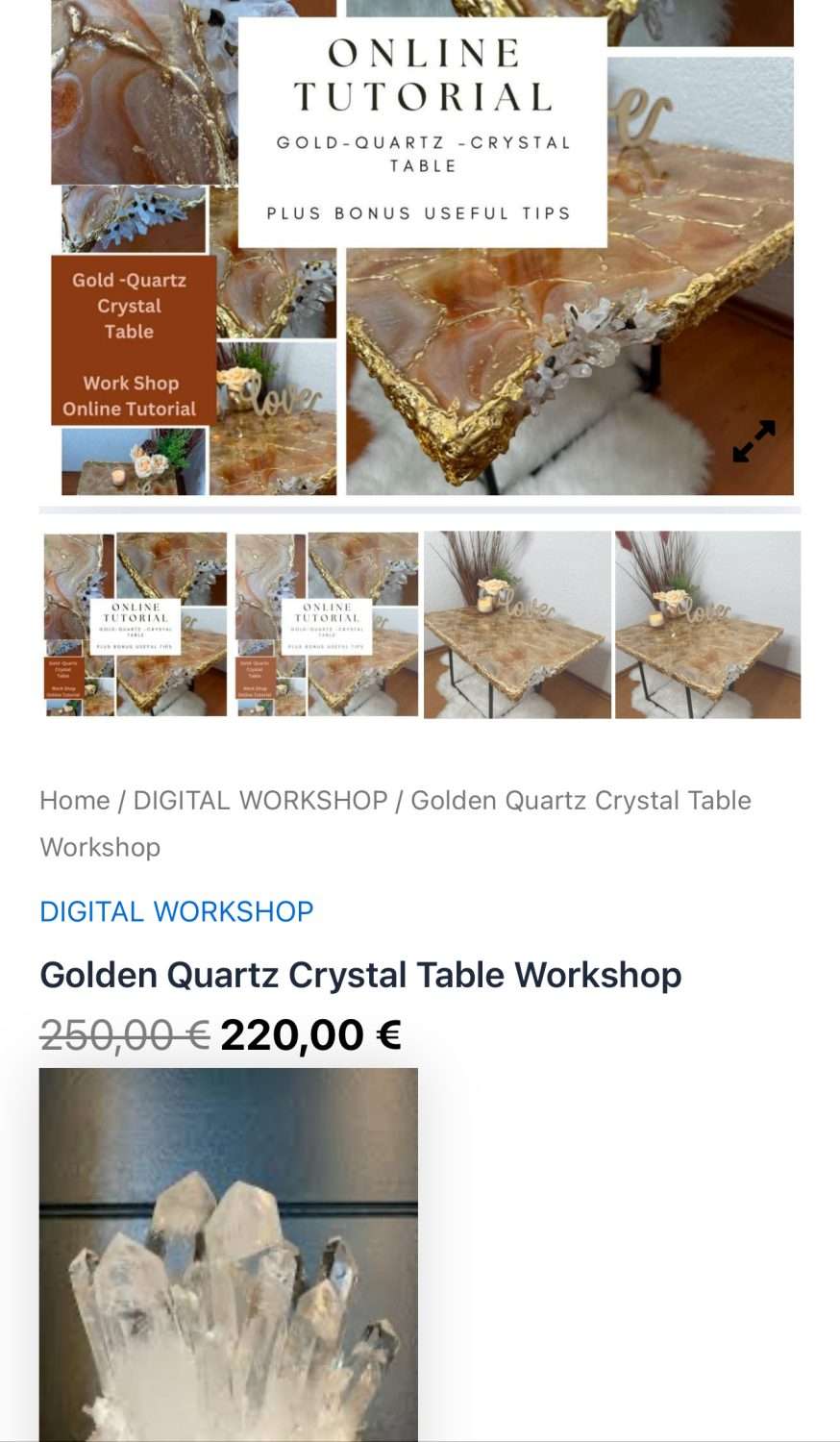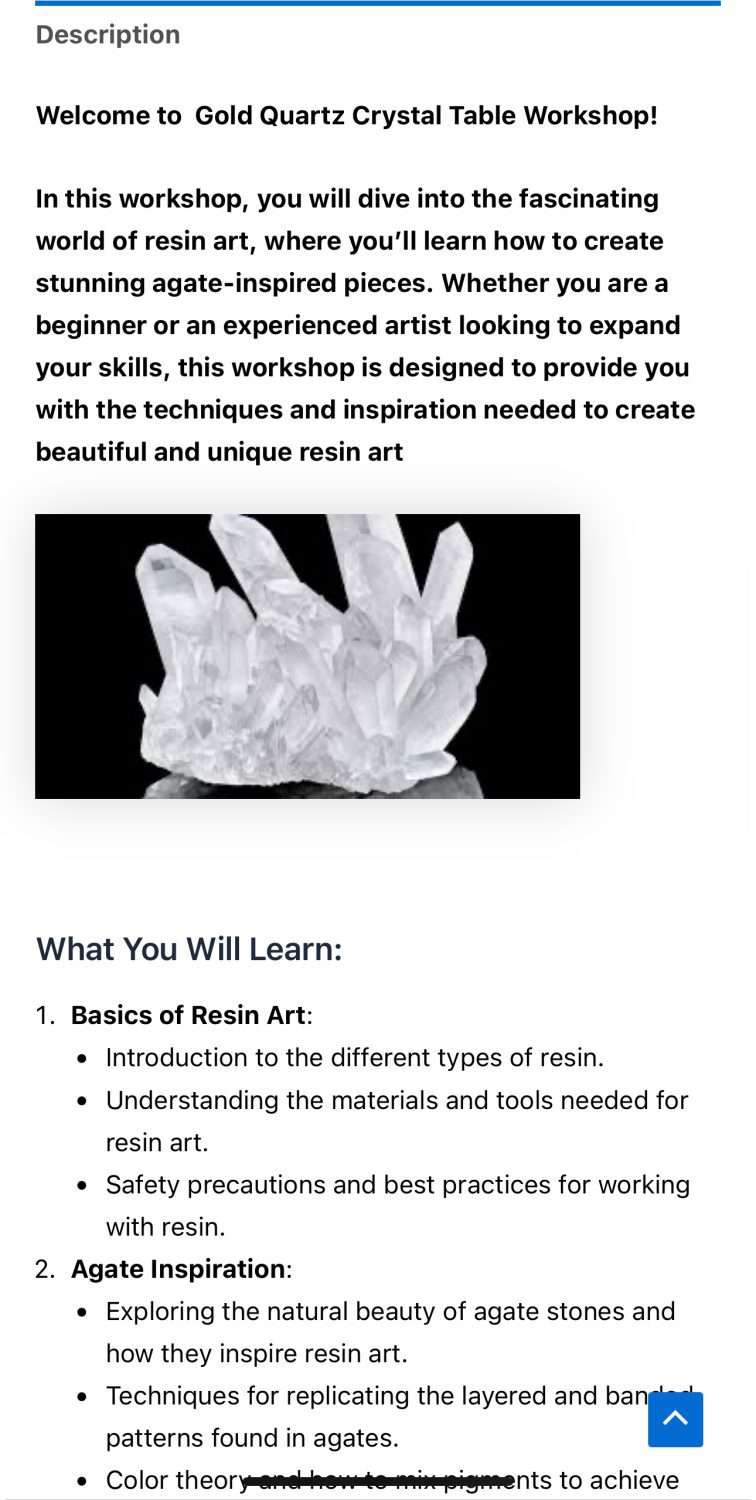 Join me for a creative and inspiring session where you’ll learn to transform resin into beautiful GOLD QUARTZ CRYSTAL TABLE like works of art.