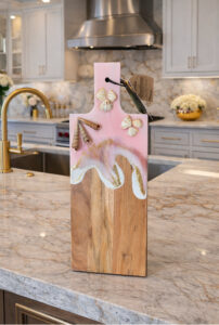 Perfect for serving cheeses, fruits, appetizers, or simply as a dazzling home decor piece. Each board is a one-of-a-kind creation, combining natural wood beauty with artistic resin details. Ideal for special occasions, gifting, or enhancing your kitchen aesthetic.