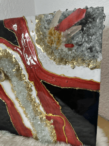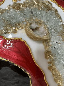 Ruby– Quartz Black & White Crystal Luxury Geode Epoxy Resin Wall Art