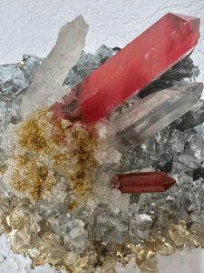 • Quartz Crystals: Add a luminous, ethereal touch, breaking up the darker tones and enhancing the overall shimmer.