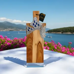 Material: Acacai Wood + Premium Metallic Resin clear Quartz CrystalsÂ