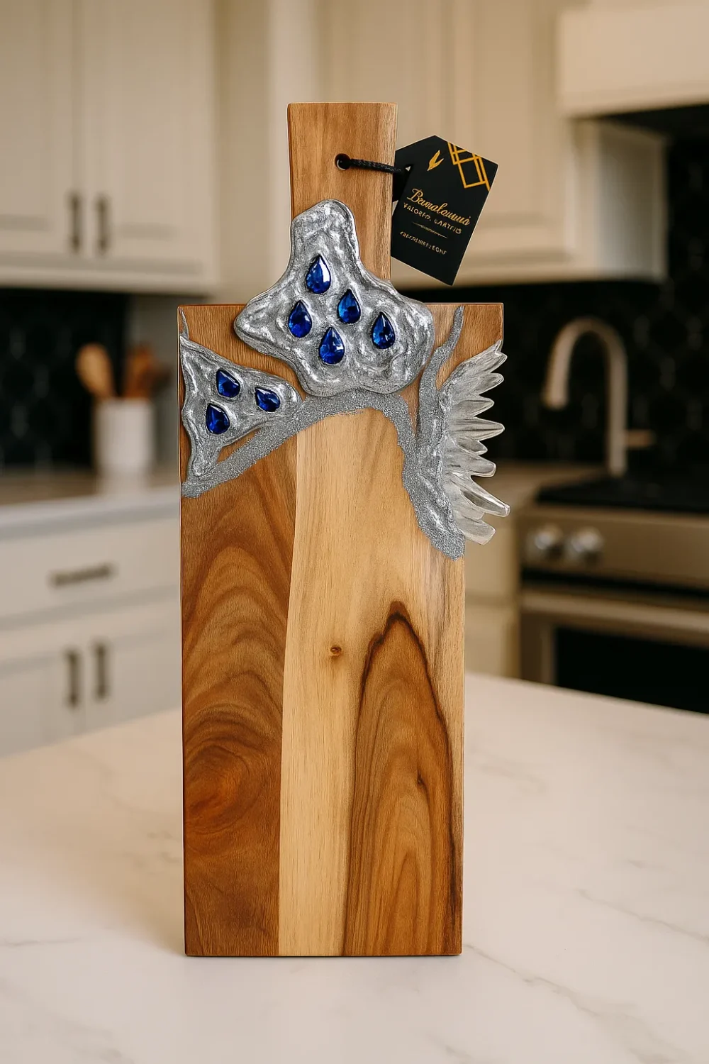 Perfect for serving cheeses, fruits, appetizers, or simply as a dazzling home decor piece. Each board is a one-of-a-kind creation, combining natural wood beauty with artistic resin details. Ideal for special occasions, gifting, or enhancing your kitchen aesthetic.