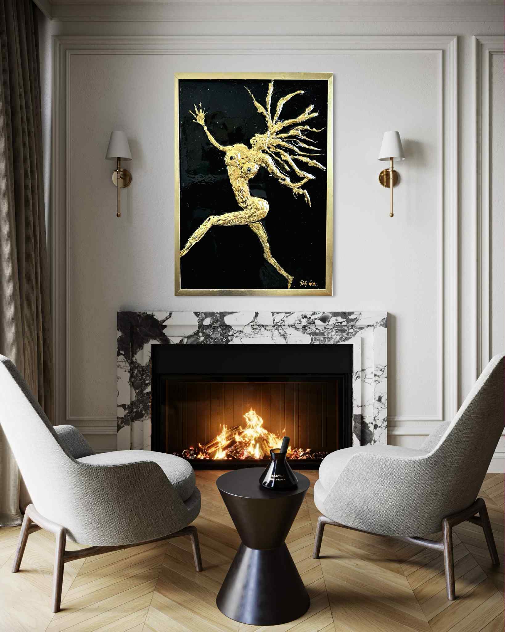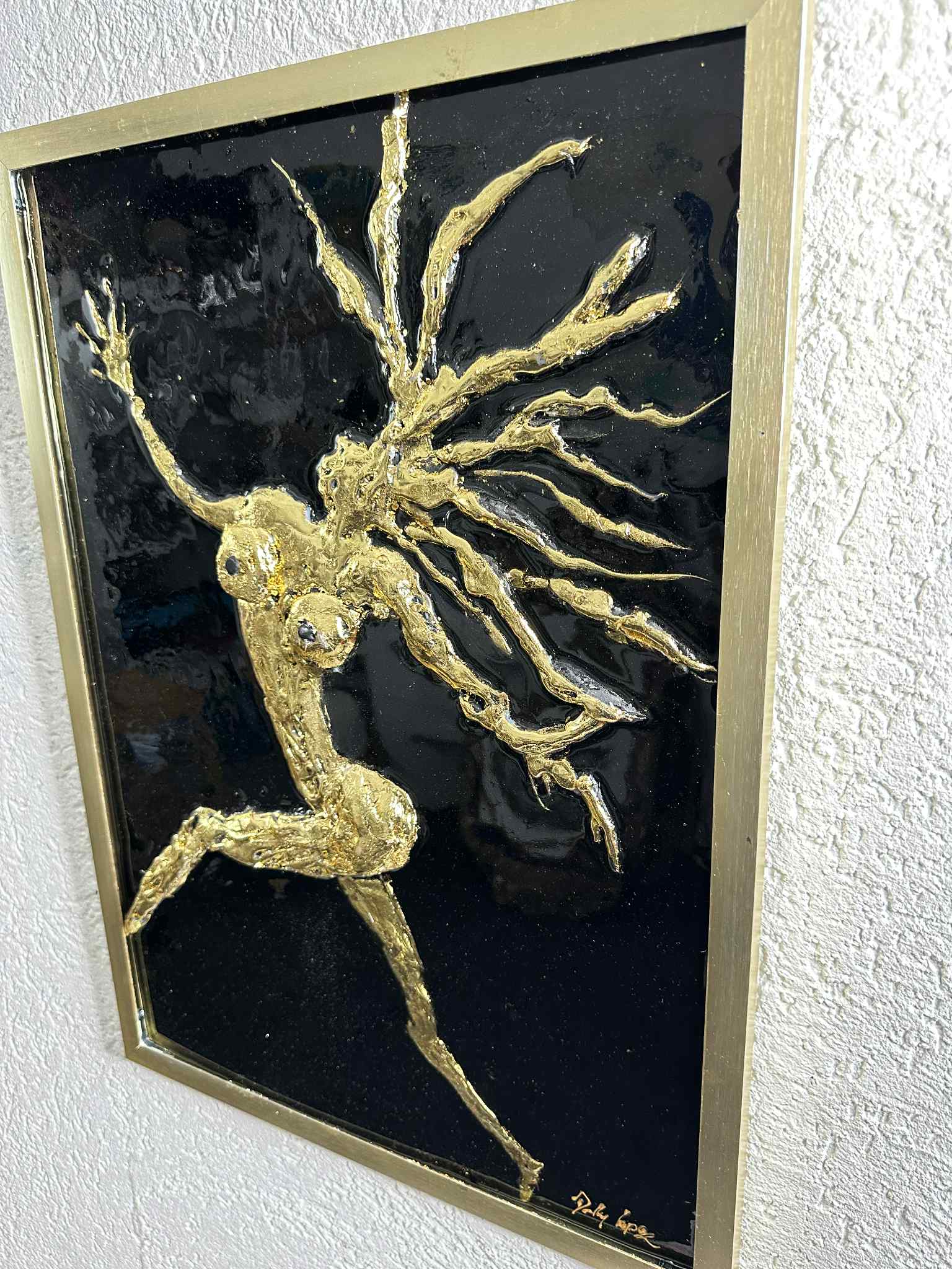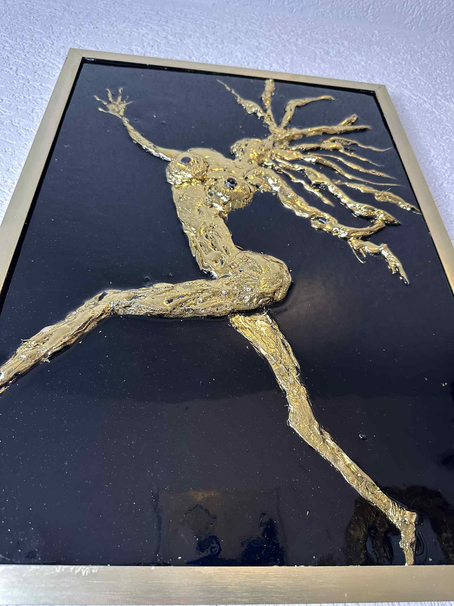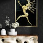 Crafted with striking 24K gold leaf and high-gloss resin, “Sun Dancer” by Dolly Lopez captures the raw beauty and celestial energy of the divine feminine in motion. This golden figure, suspended in an expressive leap, radiates strength, sensuality, and spiritual transformation.