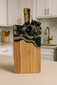 This beautiful “Noir-Gold”black and gold board is a luxury piece of functional art for the kitchen.