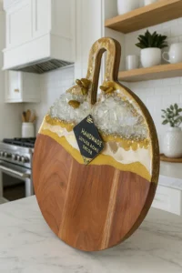 Each board is a one-of-a-kind creation, combining natural wood beauty with artistic resin details. Ideal for special occasions, gifting, or enhancing your kitchen aesthetic.