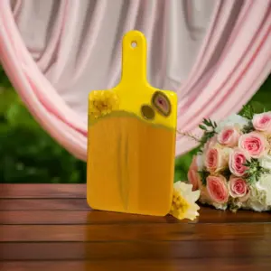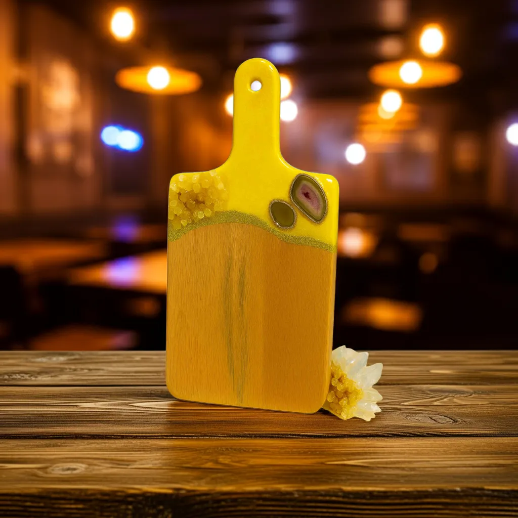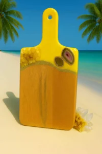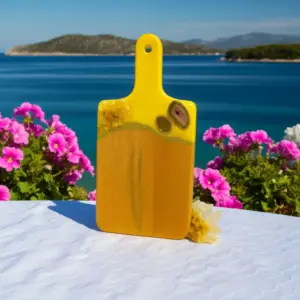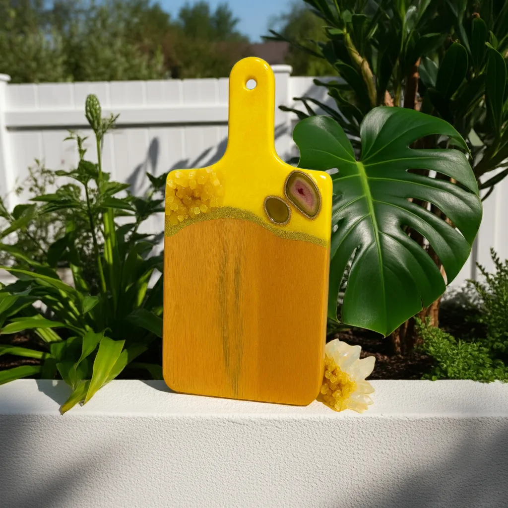 Bring radiant energy and sunshine vibes into your kitchen with this handcrafted Yellow Crystal Resin Cutting Board by Dolly Lopez Art. Designed to uplift your space both visually and energetically, this board blends high-quality craftsmanship with powerful spiritual symbolism.