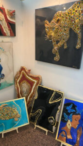 As a resin and crystal artist based in Stuttgart, I showcased my signature geode artworks, rich in gold leaf, shimmering crystals, and luxurious metallic textures. My pieces — bold, radiant, and deeply spiritual — express transformation, light, and energy. Under the gallery lighting, the gold and crystal reflections created an enchanting atmosphere that captivated visitors and reflected my passion for combining modern art and spiritual symbolism.